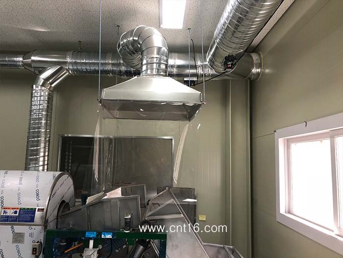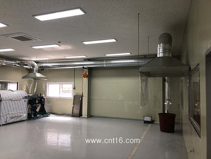업체명 : 대한00 오염원 : 약재 포장 작업중 발생되는 분진 제거 ![]() 약재 분진의 특성상 고객의 요청으로 백필터를 적용하였으며, 외부에 설치된 사진 입니다. ![]() ![]() 포장기계 상부에 캐노피 후드를 설치하였으며, 외부 기류의 영향을 적게하기 위해 측,후면 비닐커텐을 취부하였습니다. ![]() 기존 천정 텍스 매립공사를 진행하기로 하였으나 천정고가 너무 낮아 외부 노출로 시공한 사진입니다. ![]() |